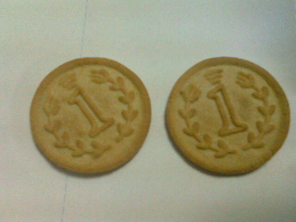中國(guó)寧波網(wǎng)手機(jī)記者158****8581:今天上午,在公司和同事一起吃餅干,無(wú)意間發(fā)現(xiàn)餅干上的圖案,和我們用的一元硬幣圖案差不多,我們同事開(kāi)玩笑說(shuō):“我們吃一塊餅干就要一元錢了”!