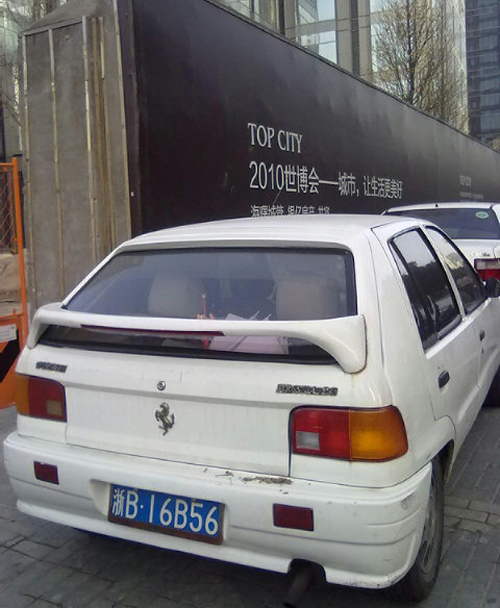 天一廣場驚現(xiàn)夏利牌法拉利!