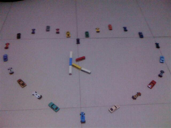 中國寧波網(wǎng)手機記者139****8094:今天中午公司的美媚們用30輛卡通小汽車在地上擺放了一顆心型圖案,中間的一個k字就是有著一顆kid孩子一樣、不想長大的心的adult美媚們,哈哈!