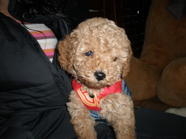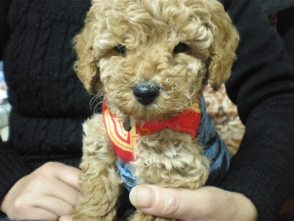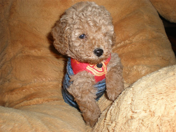 中國(guó)寧波網(wǎng)手機(jī)記者139****0871:你有沒發(fā)現(xiàn)我家養(yǎng)的小泰迪的眼神很憂郁咩?額,怕它著涼所以給他套穿了件小棉襖,外面那個(gè)藍(lán)黑條條的其實(shí)是我的襪子,超可愛吧!哈哈!