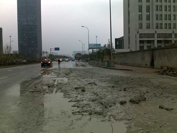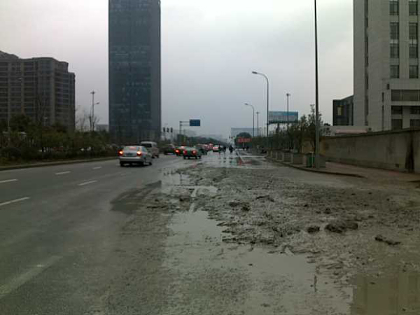 中國寧波網(wǎng)手機(jī)記者139****8094:今天早上(3月1日)7點路過在江東福明家園三期小區(qū)后門公管處西側(cè)由南向北的滄海路上被夜間工程車上的泥巴灑滿半條馬路,電動車無奈借道與汽車同行!嚴(yán)重的安全隱患,到上午9點10還沒有被清除!