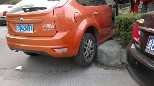 中國寧波網(wǎng)手機(jī)記者135****9069:這兩天江東華僑城周邊對違規(guī)停車進(jìn)行整治,這輛長安?怂箖蓭囋臼窍胍娍p就停,這時交警突然出現(xiàn)了,不知道是車主急了還是害怕,油門一加車子竟沖上到了人工花壇上......落的個尷尬的場面!請大家注意文明停車,小心駕駛!!