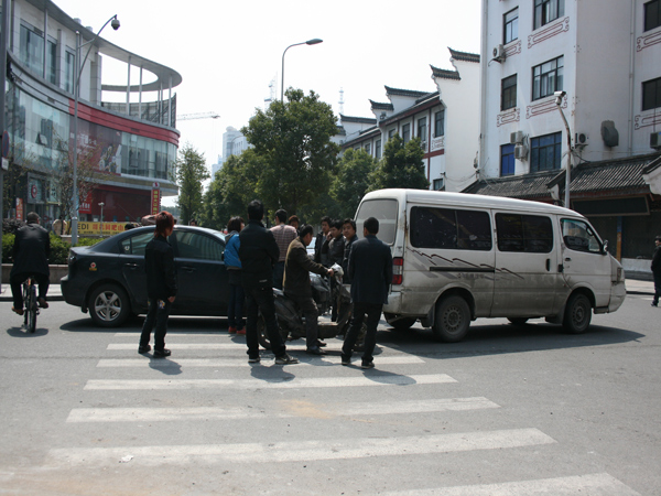 在中午12:15大來街兩輛車發(fā)生刮蹭事故,由于臨近城隍廟步行街比較近,人流比較大,車輛和人流都比較擁擠,提醒行人和車輛都遵守交通規(guī)則,注意平安出行。