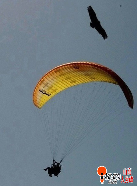 滑翔隊員與鷹同行!
