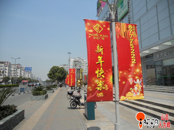 中國寧波網(wǎng)手機(jī)記者139****8094:江東泰富廣場上天天過新年,紅色的“新年快樂”標(biāo)語到是很喜慶!常常路過,也就常常喜慶了。〗裉熘形纾3月30日)又路過,又喜慶了一回!!哈哈!只是這有點過時的標(biāo)語是不是也該換換呢!來點新鮮的吧!