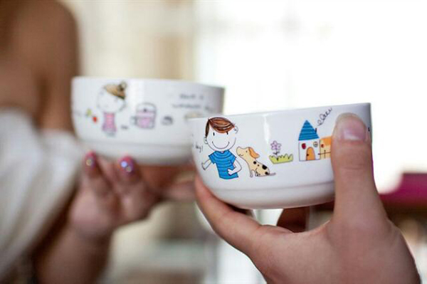 童趣十足的手繪卡通“情侶碗”!時下很是受到新婚情侶們的青睞!一日三餐“情侶碗”那樣的愛意濃濃,總是那樣的情意綿綿,總是那樣的溫馨浪漫……!