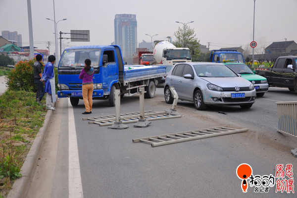 中國寧波網(wǎng)手機記者158****1750:桑塔納剎車不及時撞倒隔離欄、小躍進避不及追尾險上人行道。今日上午11時許,在環(huán)城南路(寧橫路南約200m處),一輛桑塔納轎車因沒把好方向盤、又因剎車不及時撞到了隔離欄,隨后跟上的躍進小貨車因避讓不及險些沖上人行道。