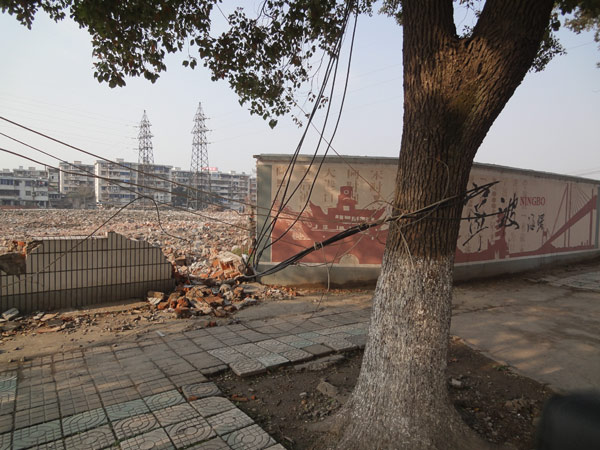 中國寧波網(wǎng)手機記者135****6815:在鄞奉路靠近海曙交警大隊附近,拆遷施工,高壓電線扯斷后,有的就隨意而雜亂地繞搭在行道樹的樹干上,半人的高度,很容易就能讓人中招,給行人行車帶來了很大的困難。