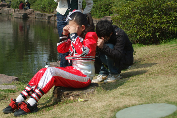 路過月湖時(shí)看見有一個(gè)長得象阿爾法的漂亮小女孩,懷疑是阿爾法的“妹妹”。哈哈,原來他們是在拍mv!