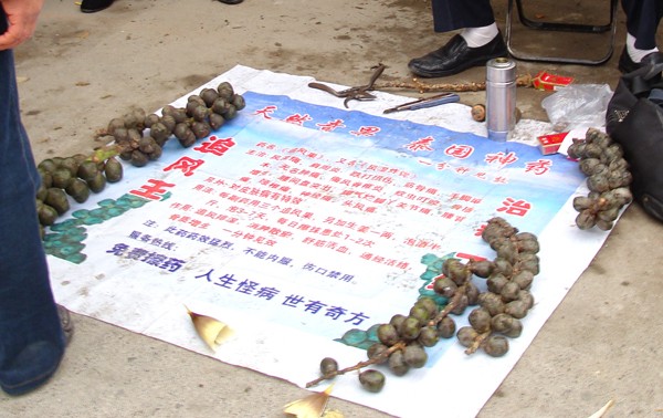 中國寧波網(wǎng)手機記者159****2092:昨日下午,在潘火農(nóng)貿(mào)市場外的小街上,有位白胡須老者在地攤上擺放著一些類似中藥羅漢果似的東西,稱謂可治瘋濕病的奇果、“泰國神藥”。不時有人光顧,我想奉勸大家一句話:有病還是到正規(guī)醫(yī)院治療,以免延誤病情!