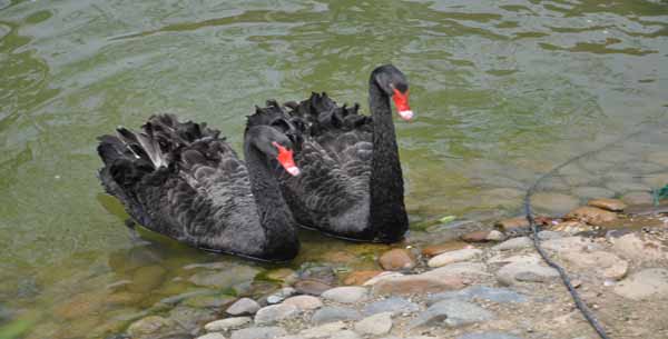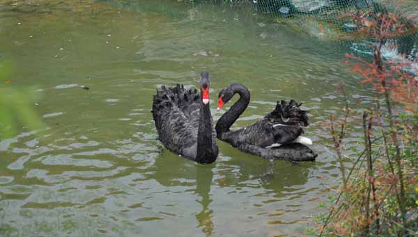 九龍湖畔,兩只黑天鵝在平靜的湖面上“閑庭信步”,好一幅愜意的美景。