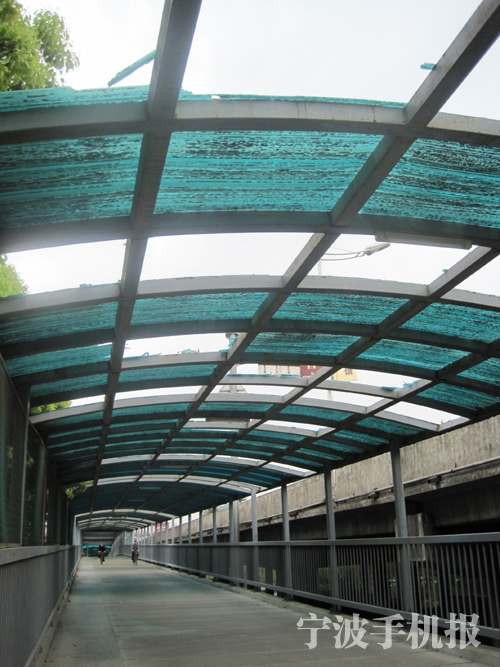 中國寧波網(wǎng)手機記者136****6522:東湖花園西側,中興立交橋輔橋本來是安裝了頂棚,但是年久失修,很多頂棚都破爛不堪,甚至還有破掉的碎屑掉下來。晴天不遮陽,雨天不遮雨,還不安全。本來是一件便民的好事,但是如果沒有后期維修,便民也就變了味!