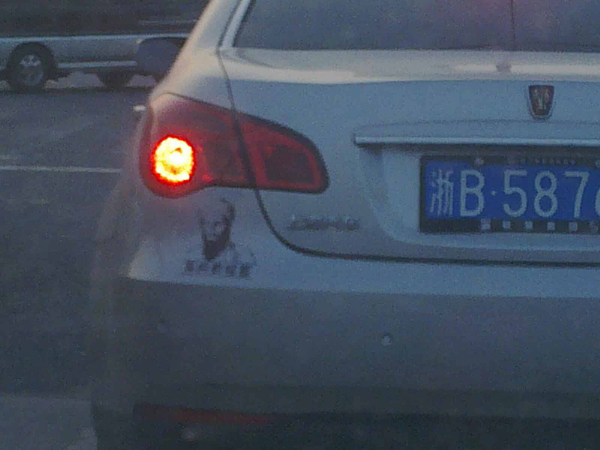 這輛牛車竟然車尾粘上“車內(nèi)有拉登”!并伴有拉登的圖象!好雷人啊哈哈!