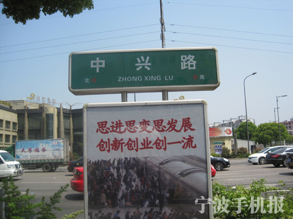 今天有讀者路過中興路時(shí)發(fā)現(xiàn)中興路的路牌宣傳欄也犯了同樣的錯(cuò)誤,難道是同一家印刷公司印制的?宣傳欄可不能犯這樣的錯(cuò)誤啊,不然會(huì)誤導(dǎo)群眾的!