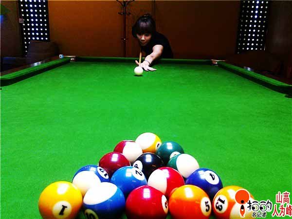 中國寧波網(wǎng)手機記者139****8094:臺球運動漸受時尚白領(lǐng)女性們的青睞。閑暇時打上幾桿臺球,放松一下心情,對女性身段的潤色和健體都能起到很好的做用。美媚那瞄準,推桿優(yōu)雅的曲線姿勢,一桿下去,同樣煥發(fā)著一種力量的威力,在球與球的撞擊聲中享受著一番“抗擊”的樂趣。