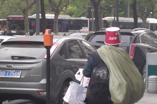 五一小長假,陽光燦爛,天氣微熱,五一廣場的垃圾叔叔頭頂“KFC”潮帽在大馬路上“辦公”,樣子十分帥氣啊, 新型“廢物再利用”模式誕生了!