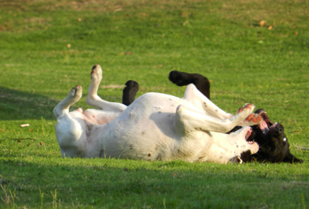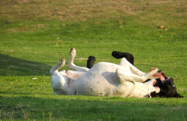 中國(guó)寧波網(wǎng)手機(jī)記者一片云:大清早,小狗們就會(huì)和朋友聚集在公園里嬉戲。嘶咬、打鬧、追逐……累了,就躺在草坪上曬曬太陽(yáng),咧嘴大笑,好一種無(wú)憂無(wú)慮的生活。
