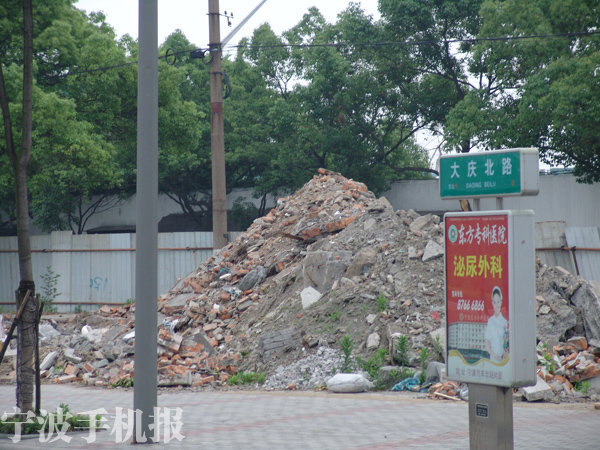 中國寧波網(wǎng)手機(jī)記者159****8722:大慶北路與人民路的交叉口,東鷹花園旁的這塊地原本有幾座房子,近日拆遷后,這塊地就一直空著,本來還是有圍欄圍著的,不知什么時(shí)候,一邊的圍欄沒有了,反而堆滿了建筑垃圾,每天都有車子開來在這里倒,成垃圾場了。有關(guān)部門也來清理過,但是屢禁不止,希望相關(guān)部門拿出點(diǎn)措施,杜絕此事。