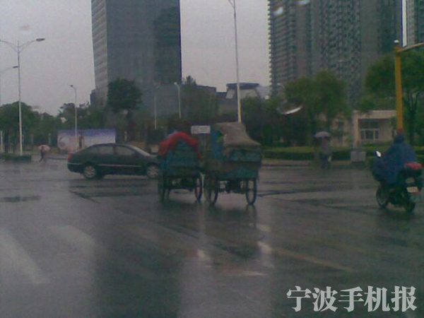 中國寧波網(wǎng)手機記者139****8701:今早8點,在鄞縣大道,兩輛滿載疏菜的人力三輪車,行駛在機動車上,其中后面一輛裝有電動助力器,駕駛?cè)艘荒_推著前面一輛三輪車,闖紅燈過十字路口,此行為違章項目甚多,危險多多。提醒,老苦大眾,辛苦賺錢的同時注意安全!