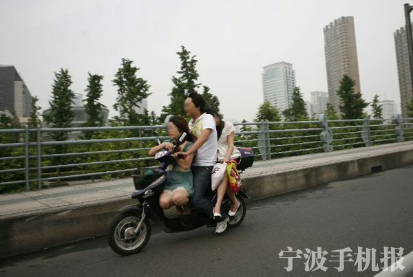 中國寧波網(wǎng)手機(jī)記者135****9069:路經(jīng)琴橋,見一電瓶車?yán)藘伞扒Ы稹保浦俣冗蠻快的!我想市民們還是不要輕易模仿了,太危險(xiǎn)了!