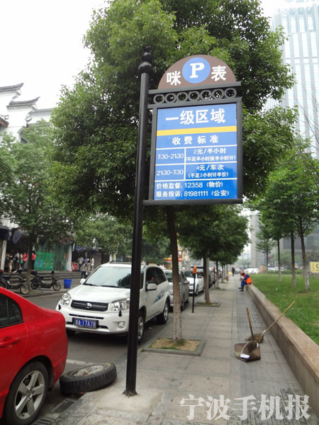 近日,記者回訪此地時,發(fā)現(xiàn)該路段處設立了一個咪表停車位的計價牌,寫明了停車費用,劃清了停車界限,海曙交警大隊有關負責人也表示,路口禁止停車的標志只是針對停車位外的路段,有了這個咪表停車牌,市民就不會有疑惑啦!