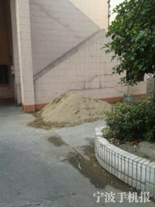 中國寧波網(wǎng)手機(jī)記者138****2001:攝于太古城小區(qū),此沙堆已放了三個多月,卻無人管理。影響小區(qū)居民出行!請沙子主人盡快來處理!
