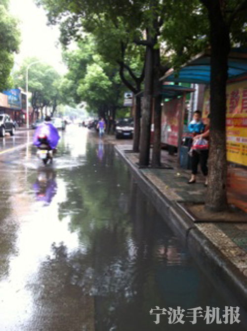 中國(guó)寧波網(wǎng)手機(jī)記者159****6660:鄞州區(qū)甬興新村公交站牌前積水嚴(yán)重,影響市民上車。在公交站等車時(shí),有時(shí)會(huì)被飛速開(kāi)過(guò)的電動(dòng)車和私家車濺的一身泥水!