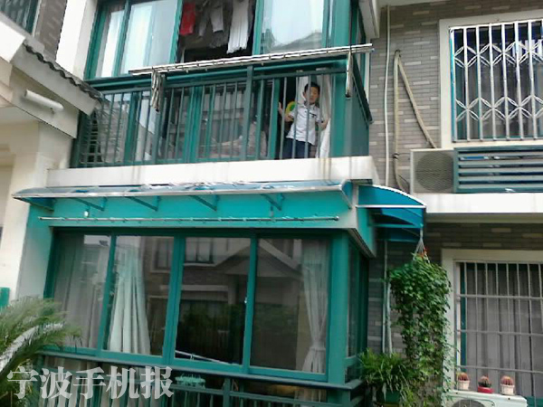 中國寧波網(wǎng)手機(jī)記者150****7880:這是鄞州區(qū)金灣華庭某幢的違章雨蓬,下雨天雨滴聲吵的人無法入睡,小區(qū)物業(yè)和居委會的同志都協(xié)調(diào)過,讓他們拆除,但大半年過去了,他們一直沒拆。最近一直在下雨,過段時間梅雨又要來了,整個晚上都睡不了覺了。請求相關(guān)部門能來解決下,還我們一個寧靜的環(huán)境!