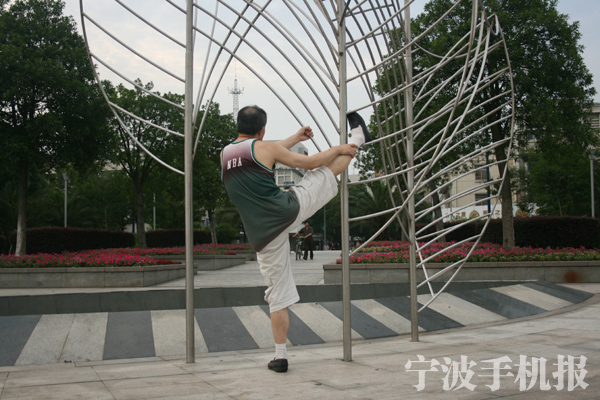 中國(guó)寧波網(wǎng)手機(jī)記者138****8389:瞧這位老兄在一個(gè)不銹鋼葉子雕塑上鍛煉身體,鍛煉身體是好的,但這樣恐怕雕塑會(huì)承受不住,要損壞的!拍攝于鎮(zhèn)海區(qū)沿江路公園!