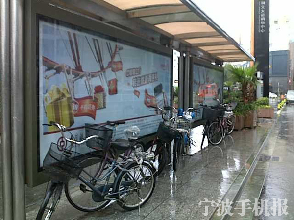 中國寧波網(wǎng)手機(jī)記者139****8094:在和義大道前一公交候車亭不知從何時起,變成了自行車“棚”!如此方便了自已停車,卻妨礙了他人的候車吧!也許這只是下雨天的無奈,愿習(xí)慣不要成自然!