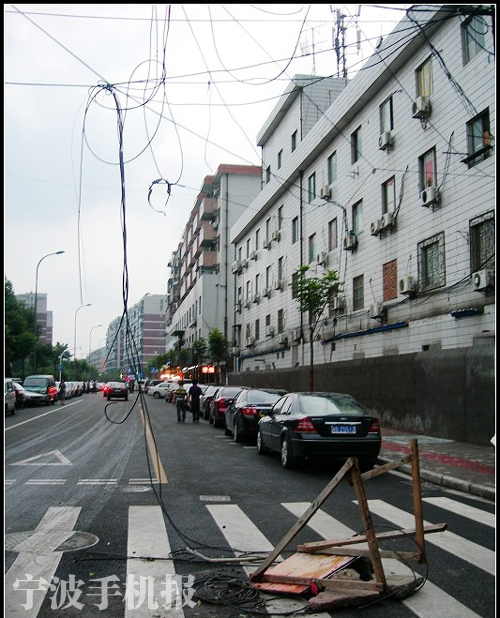中國寧波網(wǎng)天一論壇網(wǎng)友政府監(jiān)督員:近日,江東百寧街昌興街十字路口,從半空一直到路面上,亂七八糟地電線和施工后遺留下來的廢舊木頭所組成的“天羅地網(wǎng)”對通行的車輛和行人造成了非常大的影響。