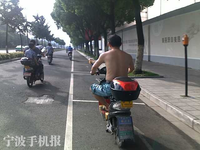 中國(guó)寧波網(wǎng)手機(jī)記者139****8094:梅雨季,露陽(yáng)光;天未熱。身先涼;赤膊哥,路上行;礙風(fēng)景,不文明!(6月21日早晨7點(diǎn)半,體育館姚隘路段)