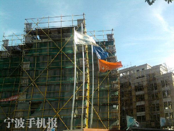 中國(guó)寧波網(wǎng)手機(jī)記者135****0295:在下應(yīng)某建筑工地,不知道何故將國(guó)旗倒掛了,該及時(shí)糾正!