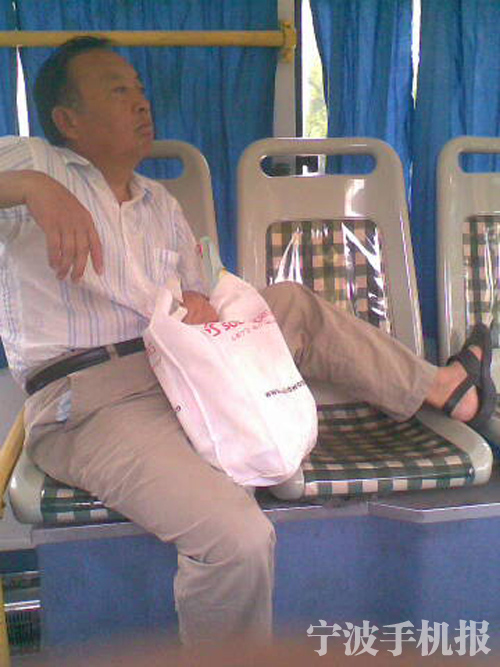 中國寧波網(wǎng)手機記者150****3199:昨天下午在330公交車上,坐我對面這位大叔居然翹著腳一人占了兩個座,還有點理直氣壯的模樣,有點過分也不文明!