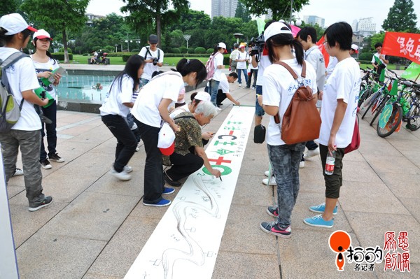 中國(guó)寧波網(wǎng)手機(jī)記者159****1750:“七•一”上午,寧波工程學(xué)院的學(xué)員們?cè)谥猩綇V場(chǎng)宣傳綠色低炭環(huán)保理念,過(guò)往的市民紛紛在“綠色低炭環(huán)!遍L(zhǎng)卷上簽名支持綠色低炭活動(dòng)!