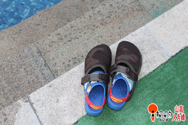 周末 泳池邊 二雙鞋 父與子 夏日的清涼......