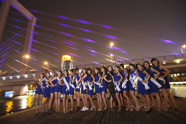 中國寧波網(wǎng)手機記者笑瞇瞇:前幾日,環(huán)球洲際小姐比賽韓國區(qū)前32強將空降寧波,參演KBS韓國廣播公司打造的青春時尚劇《我的野蠻女友外傳》。據(jù)了解,該劇部分鏡頭將在三江口和四明山取景。圖為佳麗們在三江口游船上。