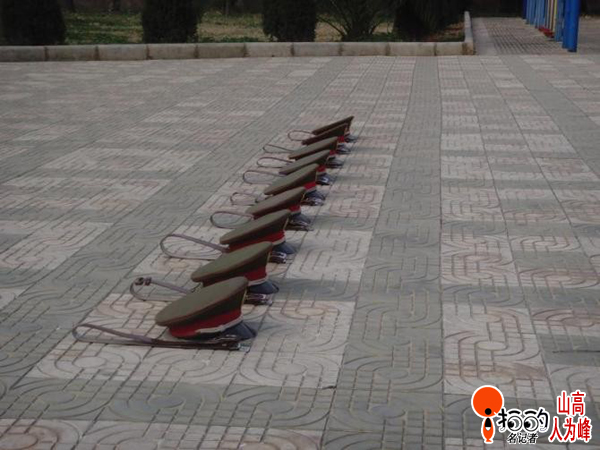 軍訓......軍帽“列隊”,整齊劃一卻不見人!呵呵!一切行動聽指揮喲(高教園區(qū))