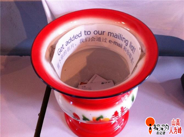 信息時代,名片滿天飛,于是“痰盂”派上了新用途。呵呵,名片給不給,還得悠著點!