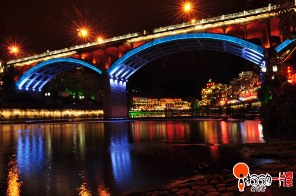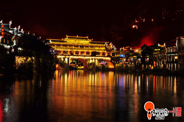 鳳凰古城今年在沱江風(fēng)光帶啟動(dòng)了夜景亮化工程,古城沱江沿岸燈火輝煌,夜色迷人。
