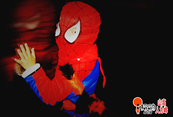 中國(guó)寧波網(wǎng)手機(jī)記者山高人為峰:“蜘蛛俠”不過就是后現(xiàn)代社會(huì)里對(duì)理想主義和英雄主義的一次非常有限的顛覆而已,卻很深愛人們的喜愛!小朋友穿上蜘蛛俠套裝,擺個(gè)造型,“蜘蛛俠”出現(xiàn)了!