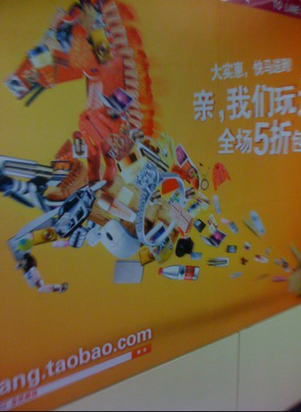 “親,我們玩5折,快馬策鞭,趕緊來哦。”北京地鐵拍到的淘寶廣告,有創(chuàng)意!