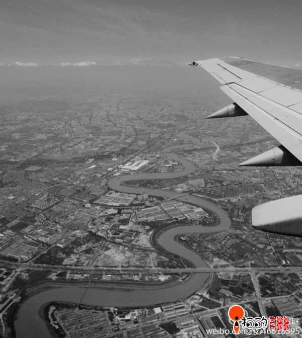 從飛機窗口往下看,宛如蛟龍的奉化江。攝于柬埔寨回來的櫟社機場上空