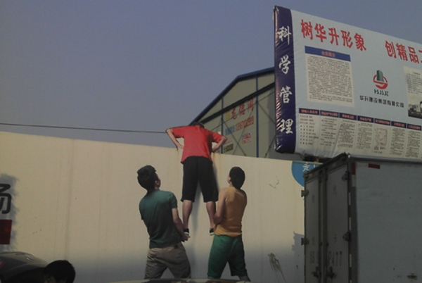 聽說里面有超市、影院,走,進去瞧瞧吧!攝于天勝花鳥市場旁一商業(yè)廣場建筑工地,四周的圍墻頗為搞笑。