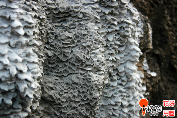 墻體上水泥石灰漿受冰凍后凝結而成的結晶體,就像野磨菇簇擁地生長著,充滿了天然去雕飾的自然味道。