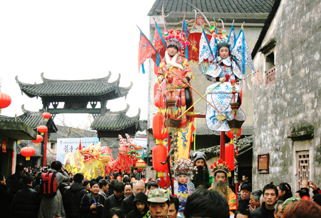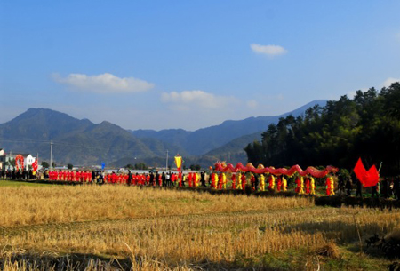 2月4日,奉化蕭王廟鎮(zhèn),舞龍隊游走于鄉(xiāng)間田頭,準備前往狂歡元宵。