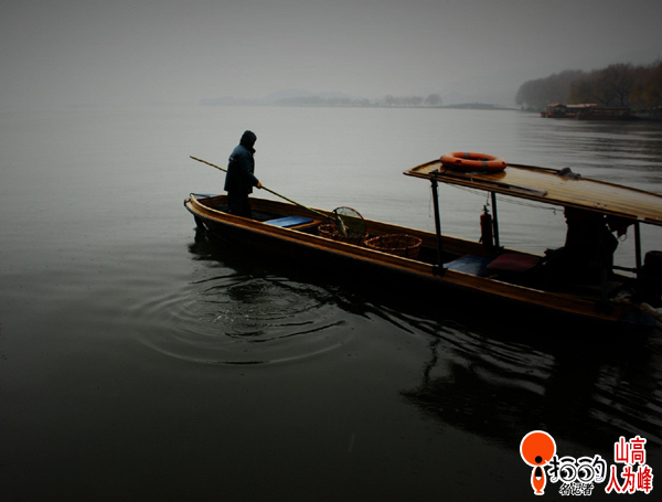 雨中西湖,老漢眼明手快,網(wǎng)上了一條西湖大鯉魚!