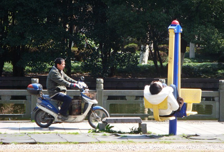 瞧,大娘這架勢,冬青樹們除了背負重壓外,看來還將承受一場“皮肉之苦”。手下留情呀!