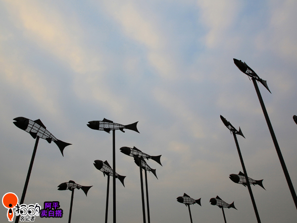 周末在寧波書城看書,看完書后走出來散步,發(fā)現(xiàn)書城右側(cè)有好多用桿子豎起來的“魚”,形態(tài)各異,活靈活現(xiàn)!
