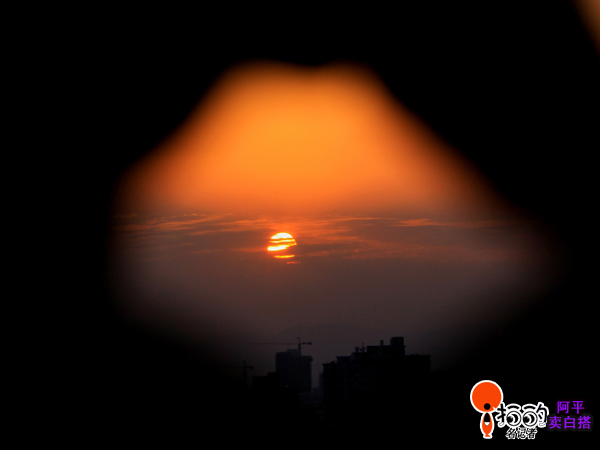 昨日傍晚的時候夕陽很好,我在單位大樓樓頂尋找拍點,但實在找不出好的景色,就用自己中指和大拇指圈成一只大眼睛,獨自欣賞落日!